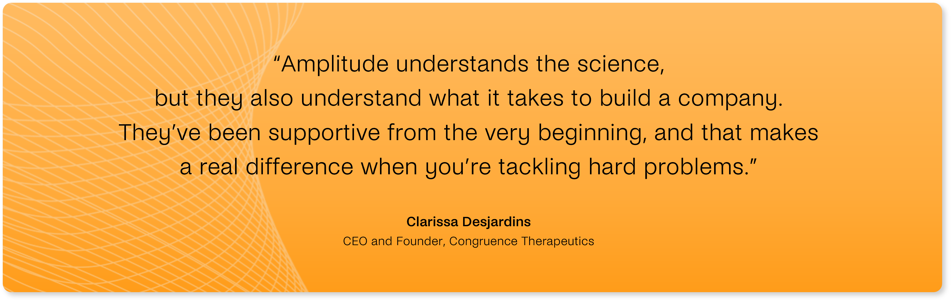 Amplitude’s early backing helped Congruence move decisively from concept to execution. In 2022, Amplitude led the company’s $50 million Series A financing, supporting the expansion of its platform and the advancement of its initial programs toward the clinic.