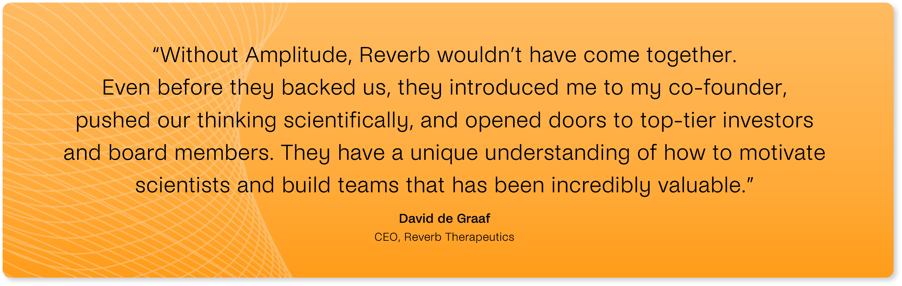 Amplitude Ventures didn’t just bring Reverb’s founders together, it helped catalyze the business and played a formative role in shaping it. “Without Amplitude, Reverb wouldn’t have come together,” says de Graaf. “Even before they backed us, they introduced me to my co-founder, pushed our thinking scientifically, and opened doors to top-tier investors and board members. They have a unique understanding of how to motivate scientists and build teams that has been incredibly valuable.”